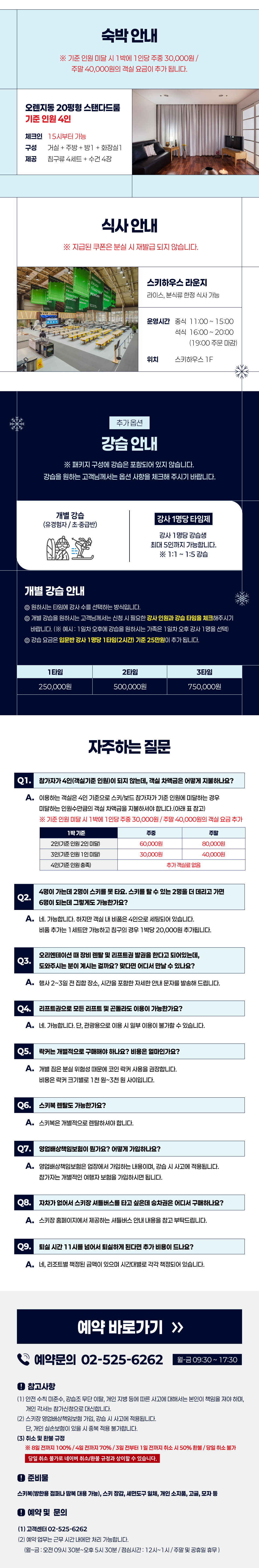 ※ 기본 패키지에는 강습이 포함되어 있지 않습니다.(강습은 예약시 추가 옵션 선택, 비용 별도)
